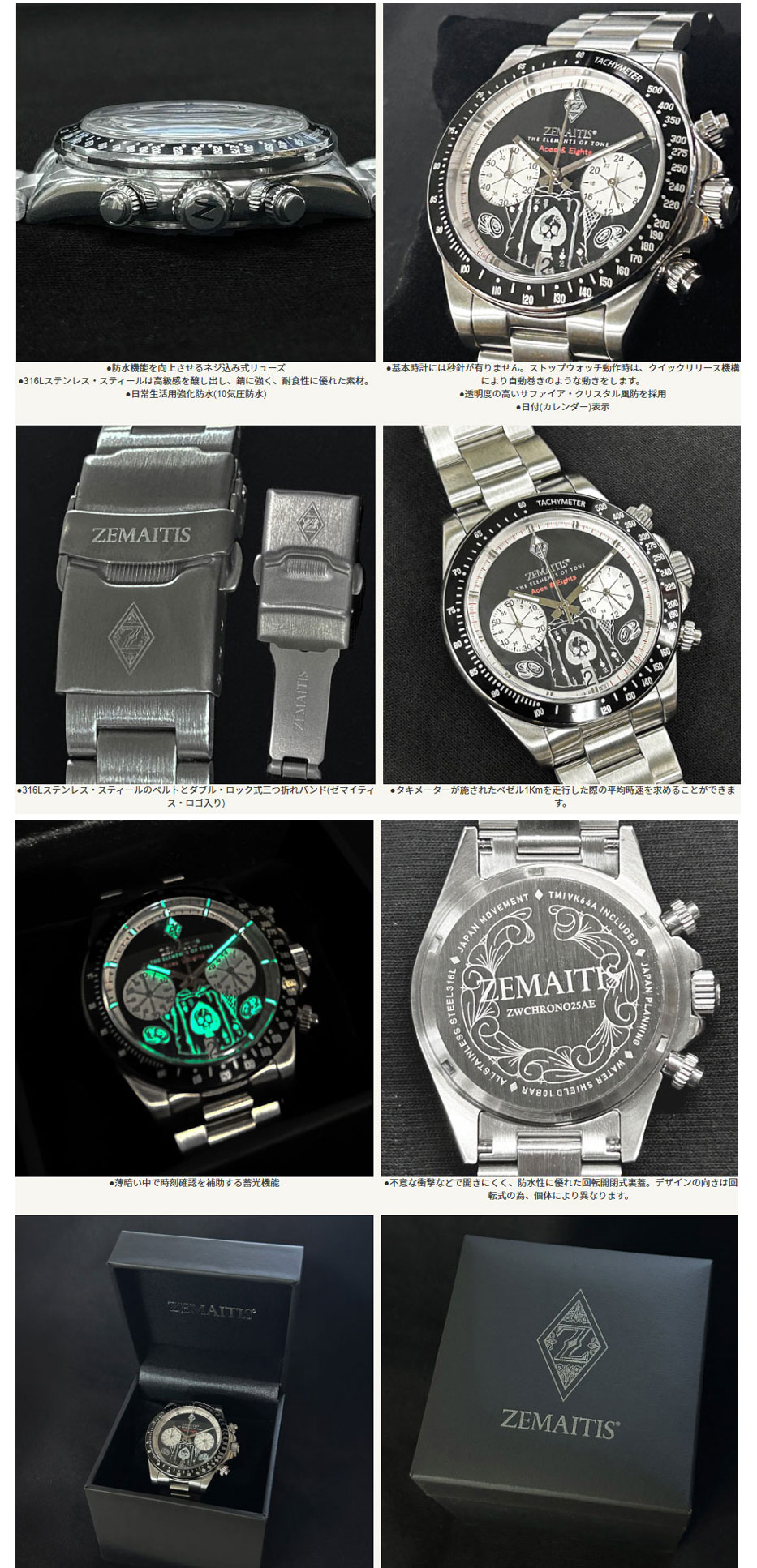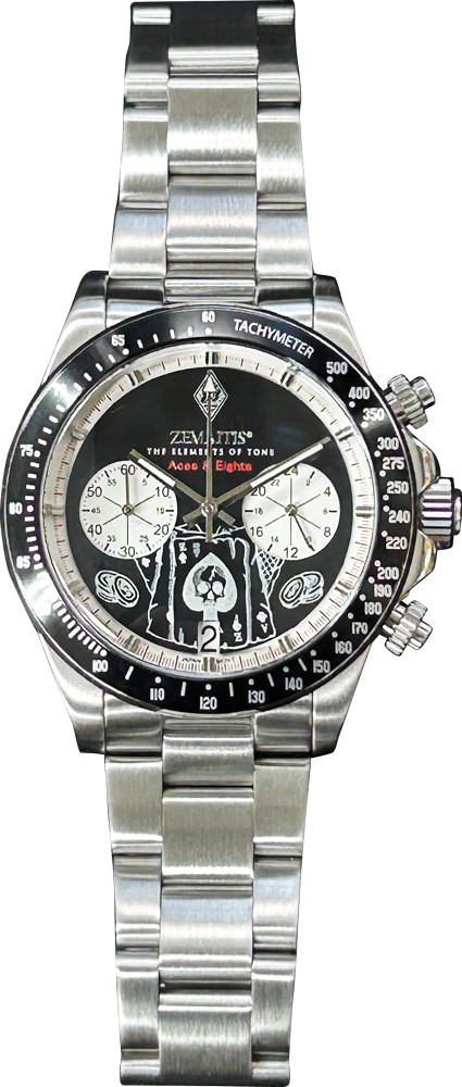 ゼマイティス・ギターを象徴するメタル・フロントのデザインを投入し、エレガントな雰囲気とゼマイティスらしい気品さを併せ持つ高級腕時計「ZWCHRONO25AE」が登場しました。第四弾となる今回はストップウォッチ機構を搭載した(クロノグラフ)モデルになります。