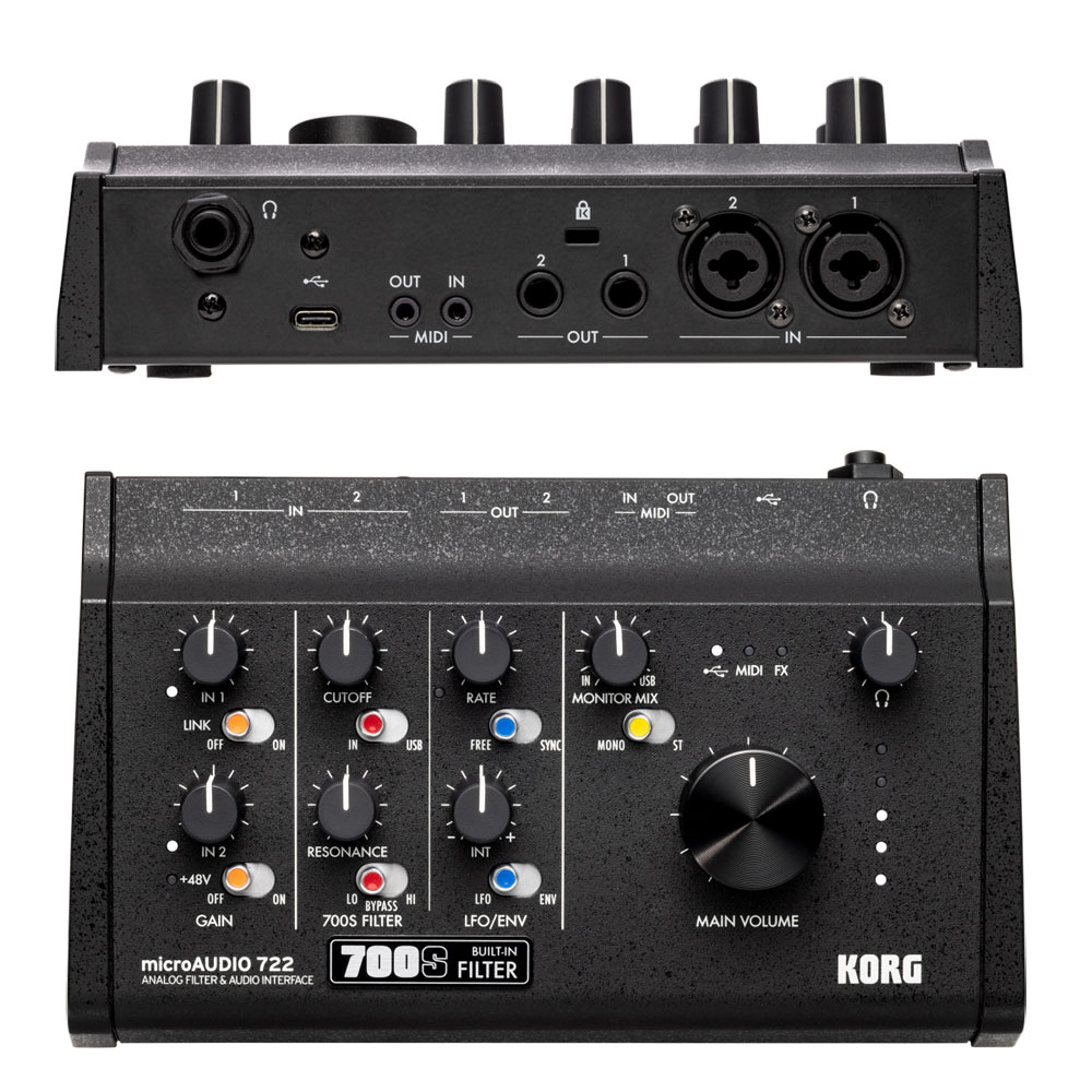 アナログが、表現を一段先へ導くmicroAUDIO 722は、コルグが初めて量産販売したアナログ·モノフォニック·シンセサイザーminiKORG 700S由来のアイコニックなアナログ·フィルターを搭載。アナログならではの滑らかで有機的なレスポンスが特長で、制作環境に組み込めば、サウンドに独自のキャラクターと動きを加えられます。