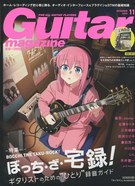 昨今、"宅録"すなわち自宅での録音は、ギタリストにとってすっかり身近なものになった。録音機材やソフトの進化に加え、コロナ禍をきっかけに制作スタイルが自宅中心へとシフトしたことも大きな理由だ。PCさえあれば誰でもギター録音に取りかかることができる。その姿はアニメ『ぼっち・ざ・ろっく!』の主人公・後藤ひとりが押入れの中でギター録音を試行錯誤する様子にも重なり、プロからアマチュアまで幅広いプレイヤーに浸透している。とはいえ、PCやプラグインを前にすると何から始めればいいのかと迷うギタリストも少なくないはず。本特集ではそんな読者に向けて新しい発見となる情報をお届けする。同アニメの劇中音楽を支えた制作陣をはじめ、プロ・ギタリストたちに宅録の実際を取材。どんな機材を使い、どうやって音を組み立てているのかを探るとともに、オーディオ・インターフェースの選び方やギター系プラグインのレビューなど、自宅でのレコーディングをもっと身近にするためのヒントを詰め込んだ。後藤ひとりが押し入れで黙々と録音しているよう、夢中になって楽しむ宅録ノウハウを得てもらえたら幸いだ。