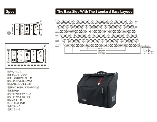 Bravo III 120 はリードセット3で従来の同クラスモデルに比べ、小型軽量化が実現し、音域:F-A’’’ とベース数:120となっております。新しいデザインのグリル、レジスターボタン、鍵盤のタッチノイズを抑えた、サイレントキーなど改良されております。