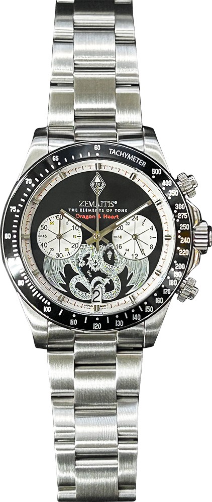 ゼマイティス・ギターを象徴するメタル・フロントのデザインを投入し、エレガントな雰囲気とゼマイティスらしい気品さを併せ持つ高級腕時計「ZWCHRONO25DH」が登場しました。第四弾となる今回はストップウォッチ機構を搭載した(クロノグラフ)モデルになります。