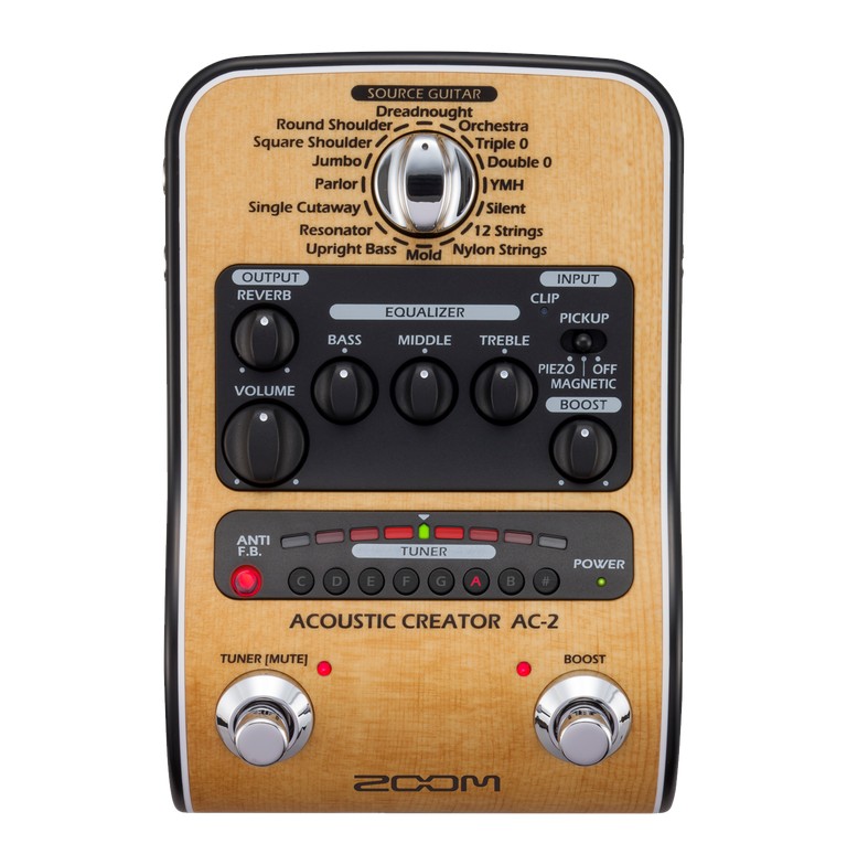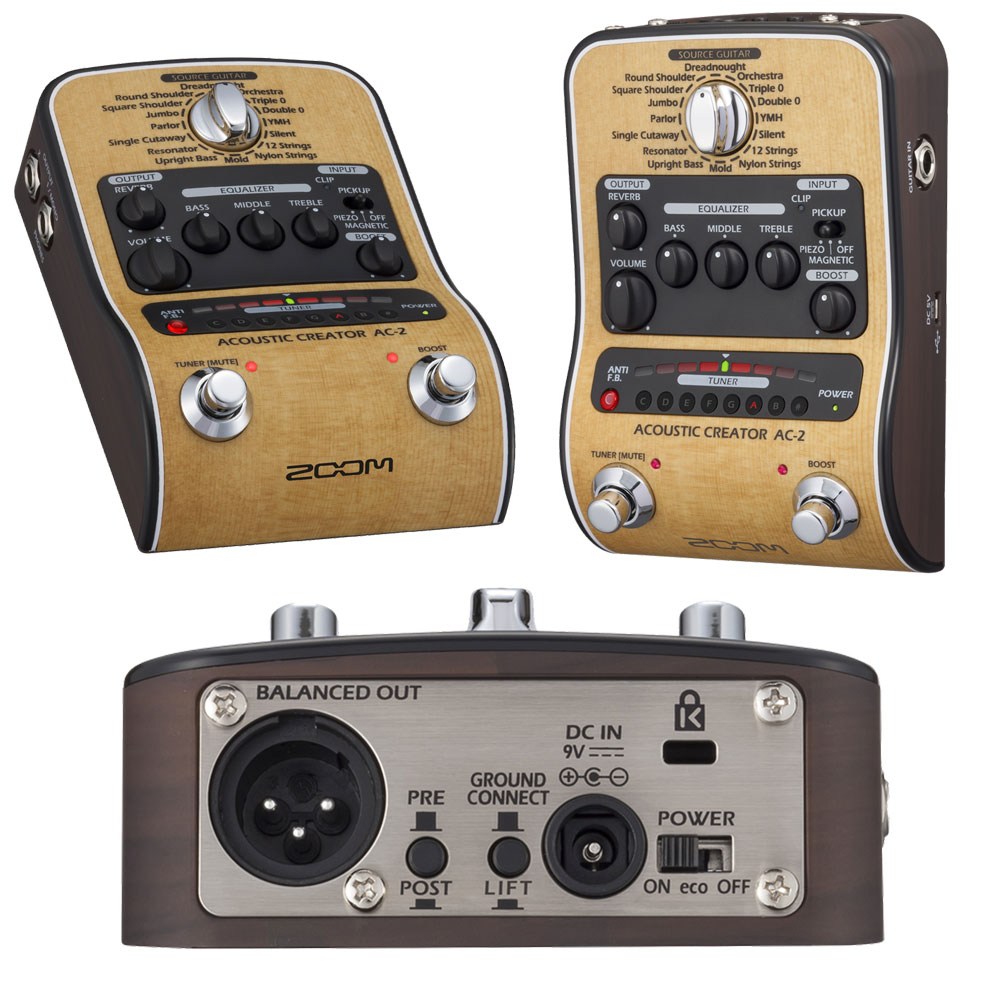 ZOOM AC-2 は、ピックアップを通すことで失われがちな“ボディ鳴り”や“空気感”を見事に復元し、まるでマイク録りしたような自然でリッチなアコースティックサウンドを実現する 高品位プリアンプ兼DI です。