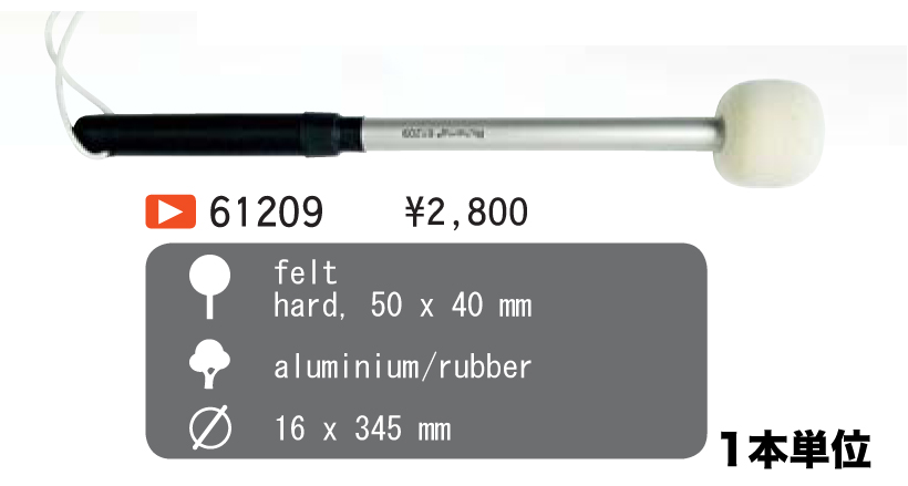 型番 : 61209 bassdrum,Marching&Gong用マレット