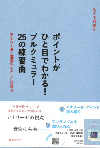 2つめの軸は「音楽の共有」。先生と生徒で連弾をしながらの指導に最適な『原曲がそのままひける ふたりのブルクミュラー25の練習曲 連弾伴奏集』(佐々木邦雄 伴奏作曲)の演奏ポイントや作曲の工夫などを掲載。レッスンで役立つこと必至。