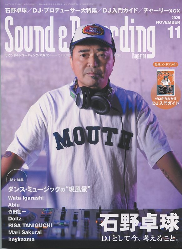 サンレコ今号は、本誌と付録ハンドブックの両方で、DJやダンス・ミュージックのプロデューサーにフォーカス。シーンを象徴する国内アクトとして、石野卓球が本誌のカバー&巻頭インタビューに登場します。DJを始めたきっかけから活動の仕方、実技的な部分まで、ユーモラスなエピソードを交えつつ語ってくれたので、彼のDJ像に学びたい方は必読! 撮り下ろしカットや使用ツールの写真とともに展開します。