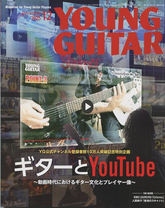 表紙特集:ギターとYouTube〜動画時代におけるギター文化とプレイヤー像〜おかげさまで、ヤング・ギター公式YouTubeチャンネルは登録者数10万人を突破!(記念品として“シルバー クリエイター アワード”=銀の盾をいただきました!!)今やそのYouTubeをはじめとする“動画”は、プロ/アマを問わず、ギター・プレイヤーにとって欠かすことのできない重要かつ有益なツールとなっている。テクニックを磨く、知識を深める、自らを表現し、世界へ発信する──。まさに“動画時代”の今、ギターを取り巻く文化や環境、プレイヤー像は、かつてないスピードで変化している(YGの誌面連動動画もDVD→DLC→YouTubeに)。この特集では、そんな時代の波の中で進化を遂げる“ギターとYouTube(動画)”の関係を、多角的に探っていこう!!