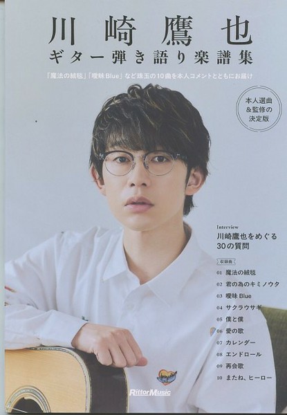 「魔法の絨毯」がSNSで大ヒットし、一躍人気シンガーソングライターの仲間入りを果たした川崎鷹也。本書ではその「魔法の絨毯」や今年リリースした4thアルバムのタイトル曲「曖昧Blue」をはじめ、人気曲「君の為のキミノウタ」「サクラウサギ」「カレンダー」など、川崎本人がセレクトした全10曲を収録しました。
