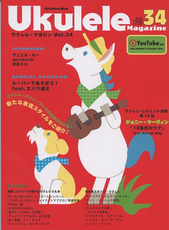 夏と冬、年2回のムックとして刊行している『ウクレレ・マガジン』2026年冬号。ウクレレ・アーティストのインタビューや、ハードウェア情報、楽譜、イベントなどのウクレレ最新情報をお届けします。