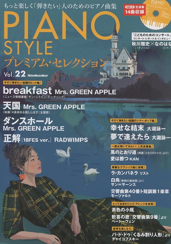 ニュース情報番組『サン!シャイン』テーマソングの「breakfast」、映画『#真相をお話しします』主題歌の「天国」など、音楽シーンで快進撃を続けるMrs. GREEN APPLEの人気曲をはじめ、お洒落で洗練されたカッコ良さで高い評価を受けているシティ・ポップからは「幸せな結末/大瀧詠一」、クラシック曲アレンジでは、人気の高い「ラ・カンパネラ/リスト」を模範演奏とともに華麗に仕上げました。そのほか、上質なジャズにアレンジした「歓喜の歌『交響曲第9番』より/ベートーヴェン」や、華やかに連弾アレンジした「パ・ド・ドゥ『くるみ割り人形』より/チャイコフスキー」など、弾きたい曲が必ず見つかる名曲揃いです。